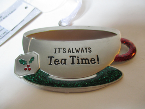 And since I obviously had Christmas on my mind that day, I also found a new teacup Christmas ornament at Hobby Lobby. Yes, my friends, the Christmas decorations are already out, and you know that if you snooze, you lose, so ... keep an eye out. These cute ornaments are $4.99 but only $3 if you use the 40-percent-off coupon, which I typically pull up on my iPhone as I'm standing in line. Anyone come across any more tea-themed Christmas goodies we need to know about? Christmas will be here before we know it!