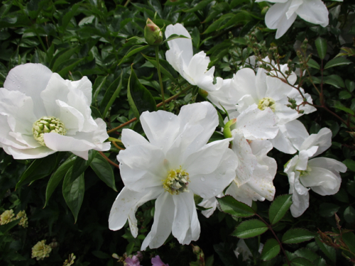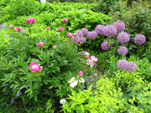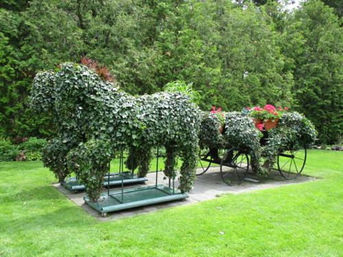 Now I didn't actually see any tea plants in the garden, but the so-called "tea gardens" of yesteryear were also designed for drinking tea and strolling, and they were sometimes called pleasure gardens as well. Who wouldn't find "pleasure" in seeing a giant topiary in the shape of one of the island's famous horse-drawn carriages? Below are a few of the other tea garden snapshots I took that day, and as you can see, I do love flowers. And considering that it was almost July when I took these, I remain astonished that the mild climate there in Michigan makes these lovely flowers possible at this time of year!