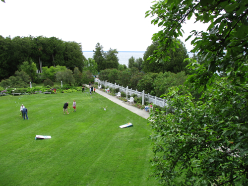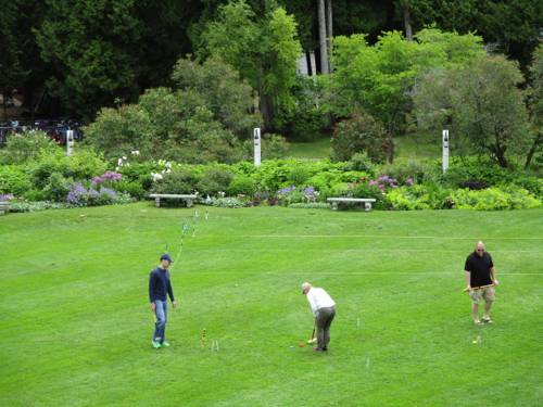 The foot of the staircase led me to the lawn, where a game of croquet was in progress.