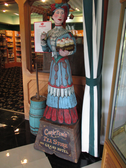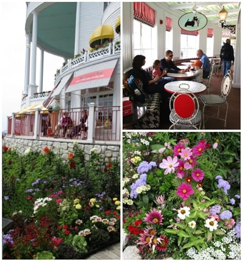 After wandering around the tourist areas for a bit and checking out one of the local museums, we headed up to the Grand Hotel. We'd eaten a good breakfast at our hotel in St. Ignace, but since afternoon tea wasn't until 3:30, we were feeling a little hungry and decided to try Sadie's Ice Cream Parlor. I'm not just a huge ice cream lover, but I must say I devoured every bite of my Bananas Foster ice cream, and I enjoyed checking out the cute decor at the shop as well as the beautiful gardens surrounding it.