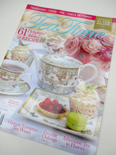 It finally dawned on me that the reason my new issue of Tea Time hadn't arrived was that I'd let my subscription expire. When I realized that, I headed to the store to get a copy before the new issue sold out. The teawares on the cover this time are exceptionally pretty, and I was surprised to learn the maker is the very affordable Grace China, a brand I know many of us have purchased at our local T.J. Maxx.