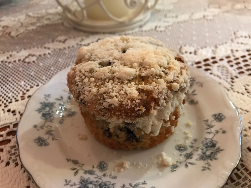 We also had a beautiful, large Blueberry Muffin at each place setting, and I knew in advance I would be saving mine, so Phyllis kindly wrapped it up for me to take with me. (It was delicious as part of my breakfast the next day.)