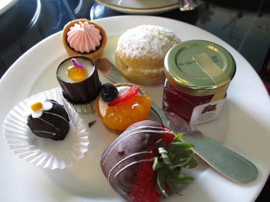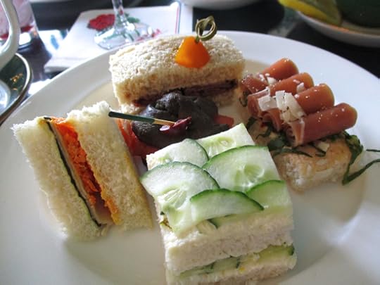 Now you would think I would have made a point of writing down which tea sandwiches I had, but alas, I did not! Turkey, cucumber, salmon, roast beef, and ... one more that I can't recall, but I enjoyed them all.