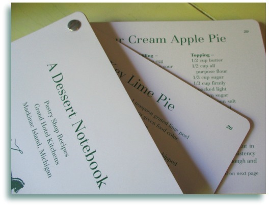 My most intriguing souvenir purchase was this Dessert Notebook, which is fastened together sort of like a book of index cards. Frankly, I wish they'd just made it a spiral-bound book, because this is not going to be very convenient to use without bending the stiff cardboard pages, but ... recipes. So I had to have it, right?