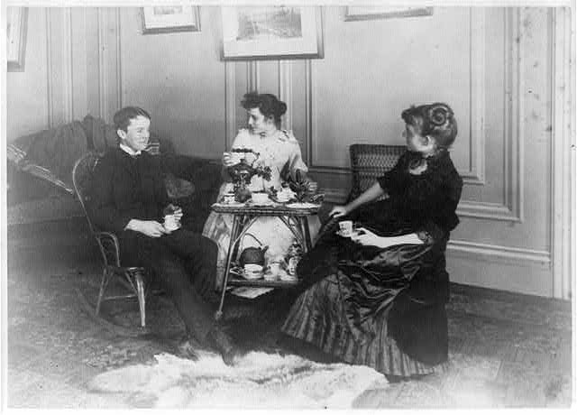 After realizing I'd let a few weeks go by without checking the Library of Congress website for new tea images, I was intrigued to see that a new collection has been added, the work of Frances Benjamin Johnston, who was described as one of the first American women to gain prominence as a photographer. According to the Library of Congress website, "Trained at the Académie Julian in Paris, she studied photography upon her return to Washington, D.C., in the mid-1880s and opened a professional studio circa 1890. Her family's social position gave Johnston access to the First Family and leading Washington political figures and launched her career as a photojournalist and portrait photographer. Johnston turned to garden and estate photography in 1910s."And lo and behold, I came across this photo titled: