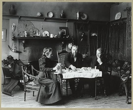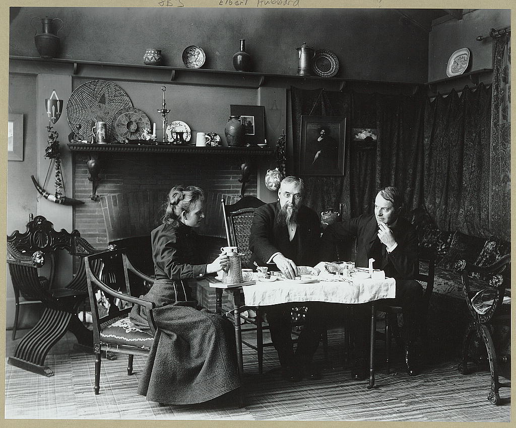 Then I came across another photo in which it was much easier to identify Frances. The title is:[Frances Benjamin Johnston having tea with Elbert Hubbard (far right) and and lecture manager James Burton Pond (center) at her studio in Washington, D.C.]