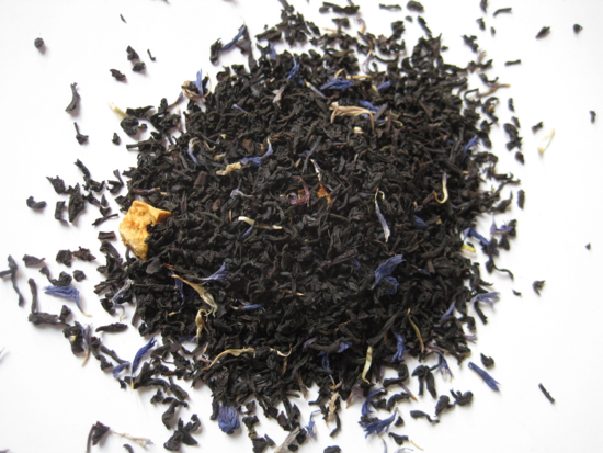 Now isn't this a *pretty* blend? I think loose tea is as attractive as some potpourri I've seen, and this tea also smelled absolutely divine, like a nice fresh Earl Grey yet somehow not quite as potent as the typical Earl Grey. The ingredients are black tea, orange peels, blue coneflowers, natural vanilla flavor, natural bergamot flavor, and natural creme flavor.
