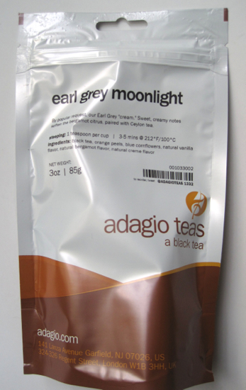 When Adagio Teas offered me the opportunity to sample some of their products a few months ago, I was surprised to see on their website an Earl Grey blend I hadn't tried before, the Earl Grey Moonlight. (And may I just say that I continue to be impressed by this infuser mug I received from Adagio at the same time. It quickly became my go-to mug at my desk each day, and that infuser basket looks as good as new every time I rinse it out. If you've been less than thrilled with your infuser mug, you may want to put this one on your wish list!)