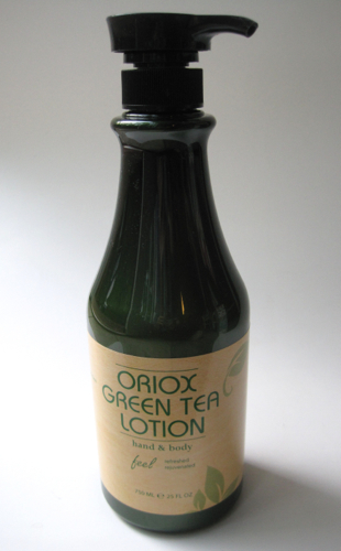 I was so excited about my beautiful fabric bag that I almost forgot to mention the terrific treats inside, including a huge bottle of this delicious-smelling Oriox Green Tea Lotion made with camellia sinensis leaf extract…