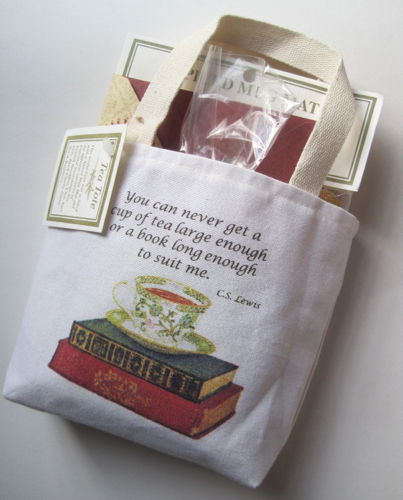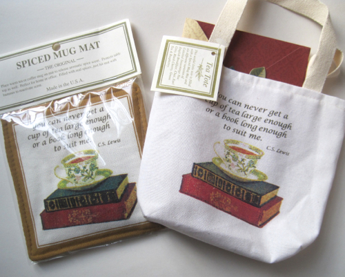 This darling little tea-themed tote and mug mat include a quote from the great C.S. Lewis, whose "Screwtape Letters" is one of my all-time favorite books.