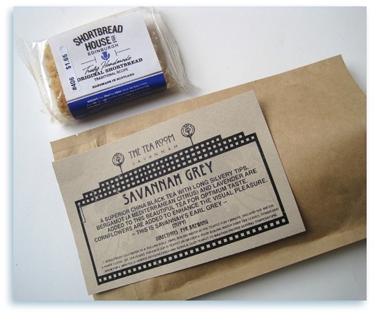 I was at a meeting the other night when a new friend, Cynthia, handed me a cute gift bag and said there was something in it for me. She knows I like tea, and she and her husband recently visited Savannah and brought me back this Savannah Grey blend, which she noted is her husband's favorite, and some delicious Scottish shortbread. What a lovely and unexpected treat here in the first week of January!