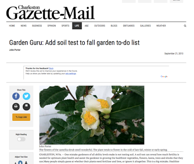 • Yes, you can grow camellia sinensis in West Virginia. I learned that from this 2013 article in the Charleston (W.Va.) Gazette-Mail. I was happy to read that, like me, the author doesn't baby his plant at all, and it has proved quite hardy.