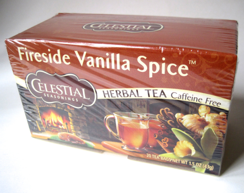 When I was at that new Sprouts Farmers Market earlier this week, I spotted a flavor of Celestial Seasonings tea I hadn't tried before, this Fireside Vanilla Spice. The very name lured me right in, because what sounds cozier than a "fireside" with "vanilla" and "spice" scents?