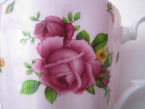 It is always fun to me when I receive as a gift something that I had wanted but resisted buying for myself. Do you ever find that happening? I can't tell you how many times I've picked up this New Country Roses pink mug at T.J. Maxx over the last year or so, but I always thought no, it's too expensive and you don't need one more tea mug. But when my stepdaughter and family visited for Thanksgiving and handed me a bag containing Christmas gifts, I was delighted to find this among the goodies inside!