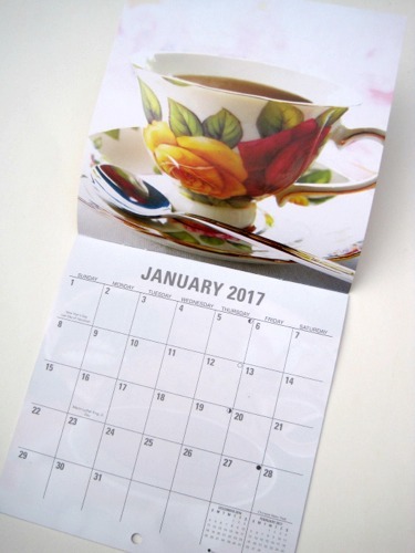 Yes, they're flimsy things, but hey, even a flimsy teacup calendar for $1 is still a bargain in my book. Besides, I like to hang one of these small-size calendars on my refrigerator using magnets, so the lighter the weight, the better.