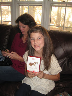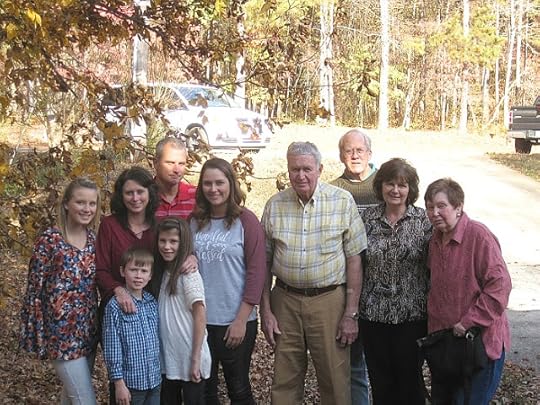 I meant to take photos of all the food, drinks, and desserts yesterday but, as so often happens when we entertain, I got too busy and forgot about it! So instead, I thought I'd share a few pix from my family's Thanksgiving celebration this year. In addition to Alex and myself, we had Daddy, Aunt Jane, my sister, Rhonda, brother-in-law Brad, and their children, Madison, Cari, Matthew, and Amelia, and Madison's boyfriend, Dylan, who was nice enough to take a photo of all of us when Amelia said she wanted a photo with everyone in it.