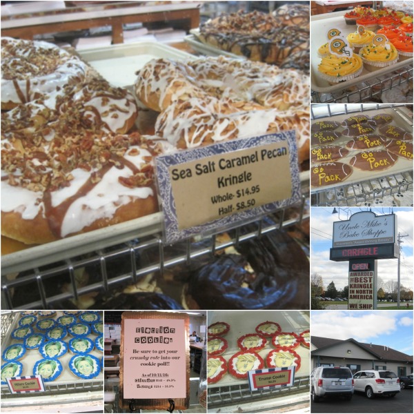 Last night we got home from our latest trip to Wisconsin to visit with my stepdaughter's family, and this time we had the fun opportunity to be on hand for the sixth birthday party of grandson Michael! It was a fun trip, as always, and this one was also quite delicious in many, many ways. Alex and I usually take a day to go off gallivanting and see something new, and this time, he wanted to introduce me to a place he'd visited with one of the guys previously, Uncle Mike's Bake Shoppe. Apparently this place is known for its award-winning kringle, a pretzel-shaped pastry that is oh-my-goodness-how-did-I-not-know-about-this delicious. My town, I'm sorry to say, can never seem to support a bakery for very long, so I am like the proverbial kid in the candy shop when all these delicious baked goods are before me!