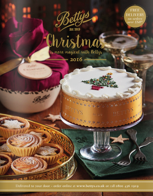 For those of us old enough to remember the sheer joy we felt when the Sears Christmas Catalog arrived in the mail each year, I must tell you that I had a similar feeling when I recently came across the Christmas catalog for Bettys. Now I know that some of you have had the pleasure of visiting Bettys Café Tea Rooms in the UK, but I, alas, have not.What I discovered online the other night, though, certainly makes me want to visit even more: their 2016 Christmas catalog. Oh, the yummy offerings inside, and what gorgeous Christmas cakes! But what I most fell in love with was their cute Bettys mug on page 24 and the pretty Christmas tea tins on page 25.