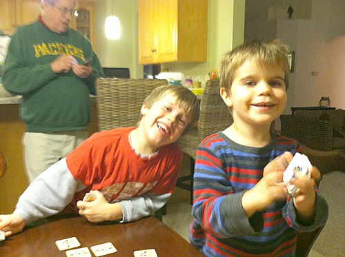 And I'll close with a photo of the two most delicious little faces on the whole trip, Michael and Andrew, shown here beating me at the matching game with their "Minions" cards. The only thing I don't like about Wisconsin is that it, and they, are so far away!