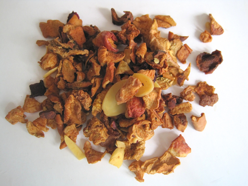And when I read "Nutty Almond Cream," it was a done deal, since I love almonds and I love cream! This blend contains apple pieces, almonds, cinnamon pieces, and beetroot, and as soon as I opened the package, I thought, "dessert tea." And when I steeped it?