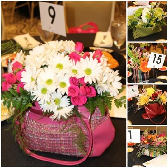 While it wasn't a "tea" per se, I attended a wonderful luncheon last week that was so lovely and does so much good, I couldn't help wanting to share it here! It's called "The Power of the Purse," and it's an annual fundraising luncheon for the Coweta Community Foundation, which I assist with public relations and marketing. This was the second year of the luncheon, and it was a huge success! The "purses" are both literal and figurative at this luncheon. Local individuals and businesses open their purses by buying tickets to the luncheon, or perhaps sponsoring a Silent Auction item, and then many women get into a bidding war over all the great purses. This year, the Silent Auction alone raised more than $13,000 for the Foundation's Women and Children's Fund. Even the table decor gets into the "purse" spirit, since all the flower arrangements are created using vintage purses. The arrangements are for sale after the luncheon, and women seemed eager to claim their favorite before heading home.