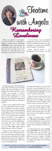 My October column is up at The Coweta Shopper, and for those of you who aren't local readers, you can see it by clicking here (it's on page 6).This month, since I knew so many local readers would remember Emilie Barnes, I wanted to pay tribute to her recent passing. Perhaps you have a fond member of Emilie Barnes and her books as well?