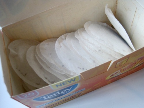 These tea bags are round ones, what I think of as Republic-of-Tea tea bags. This tea had a very tart citrus taste, and since I've been trying not to take allergy meds now that fall allergy season has arrived, I'm hoping this will help me keep colds and sniffles at bay. I usually avoid teas with medicinal or health claims since plain old black and green tea is so good for you, but the flavor of this one was quite enjoyable, so I may have to give another of these Tetley blends a try. Have these shown up at your local grocery store yet?