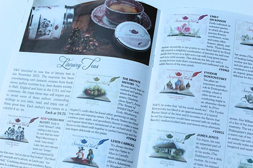 Literary Teas! Oh my goodness, I want them all. I need the Jane Austen tea, the Louisa May Alcott tea, the Lewis Carroll tea, maybe some Edgar Allen Poe tea (because quite a few of my fellow fiction editors seem to love Poe). Maybe I should try to collect them all!