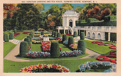 • A teahouse was also featured at the Berwind Estate in Newport, Rhode Island. Now who wouldn't have enjoyed being invited to tea in this teahouse? This linen postcard was mailed in 1942 and says, "Hello Tootsie. I am having a good time. Wish you were here too. I went swimming in the ocean, it's fun. Will be seeing you soon. Rita." Lucky Rita! (And if you're curious, as I was, here's a more modern photo of the teahouse, an image I found on Pinterest.)SaveSave