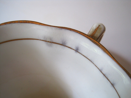 And these! So now I'm rather spooked and don't use the teacup anymore. I've Googled and learned I shouldn't have used bleach, but the reasoning was only that bleach can damage the teacup, not that it could cause a stain. Now since chemistry was never my best subject in school, I'm wondering if any of you smart people might have an explanation for the black spots on my teacup. Anyone?