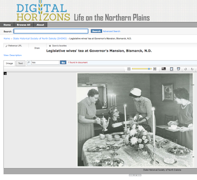 • One category of tea photo I’ve discovered this year might be titled “Politicians’ Wives Taking Tea.” (Of course today that would be “Political Spouses Taking Tea,” but it was “wife” back in the day.) When I visited the photo archives of the State Historical Society of North Dakota, it led me here, to a photo titled “Legislative wives’ tea at Governor’s Mansion, Bismarck, N.D.” This was taken in 1963, and it’s fun to note the Queen Elizabeth—style pocketbook, the hat, and the vintage eyeglasses. The women are identified as "Mrs. Ole Breum, Mrs. Esther Wenstrom, Mrs. Walter Christenson, Mrs. Otto Hauf.” (Why is Esther the only one who’s not referred to by her husband’s name?) I just wish the photo were in color so I could tell what kind of teacups and treats those were!