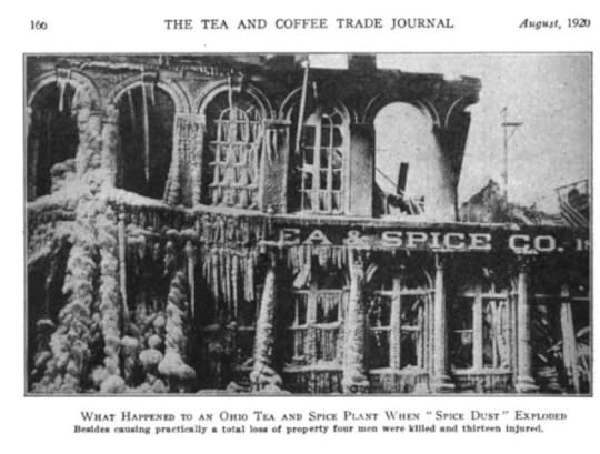 • Have you ever heard about the 1920 explosion at an Ohio tea and spice plant? I found this article in the August 1920 issue of the Tea and Coffee Trade Journal. The photo led to a little more exploring, and I came across another publication that said the Newton Tea and Spice Company was said to have been clean at the time of its last inspection, so it was believed that perhaps when firemen were fighting the fire at the plant, the floor fell in with the uncovered barrels of spices, and the clouds of spice came in contact with the flames, causing the explosion that knocked out a wall and killed the firemen. Today in Cincinnati, there is a group called Box 13 Associates which pays tribute to those who lost their lives in the fire. The call box for the fire was "Box 13," and in 1933, Box 13 Associates was formed "by a group of businesspeople and professionals who were interested in the operation, welfare, and public relations of the Cincinnati Fire Department." , which offers a heartwarming tribute to the firefighters who lost their lives that day. I always love to see something positive come out of a tragedy!