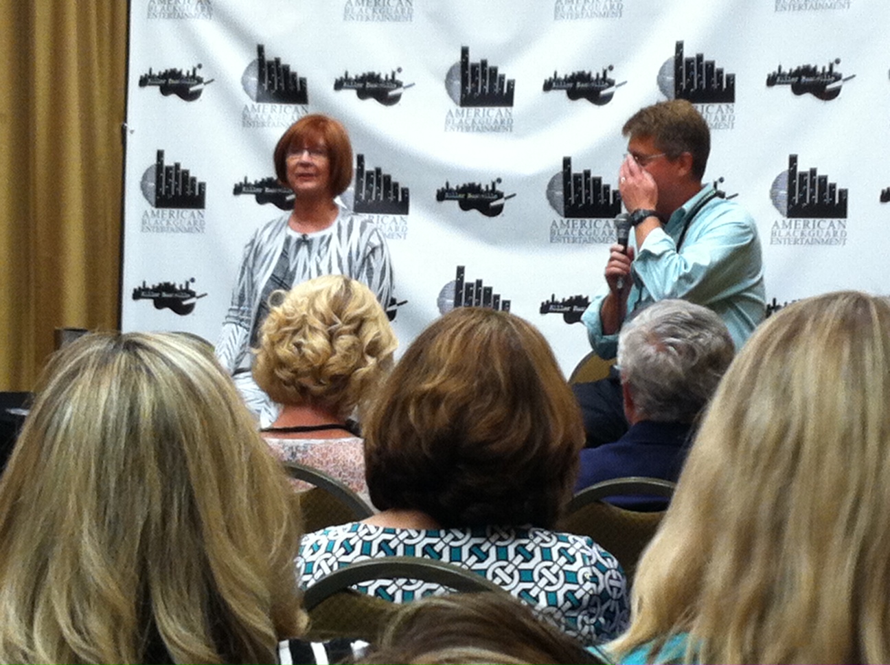 Here Janet is with Clay Stafford, the founder of Killer Nashville, leading her breakout session called "How I Write: Secrets of a Successful Author." Aside from all the helpful professional stuff, I *loved* hearing that she gains 15 pounds at the end of every book she writes and then has to go to the gym for a while. (She looked great, though, even though she told us she was wearing Spanx.)