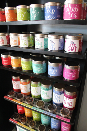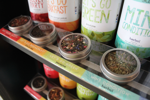 I love the variety of teas, the colorful packaging, and the fact that samples are available for sniffing. Also, the price point ($12.95 for the large, nearly-3-ounce tin) is a very good value today.