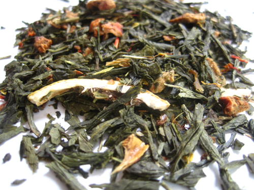 Are you a fan of sour apple flavor? I remember fondly the sour apple Jolly Ranchers of my youth, and I also recall a sour apple chewing gum that I don't see around anymore. A good grown-up replacement is this Sour Apple Martini green tea, which contains green tea, apple and lemon pieces, safflower and sunflower petals, and natural flavors. Somehow, they managed to subtly capture that "sour" taste in the tea, and I just love it!
