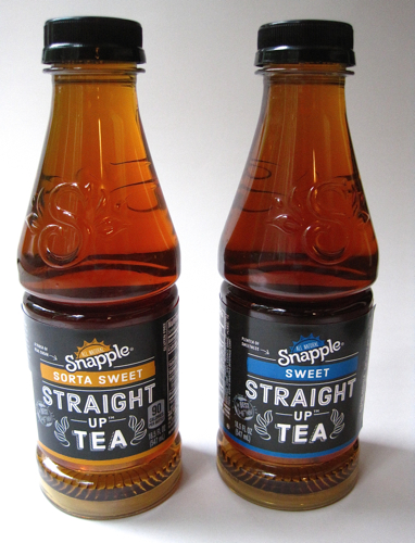 So I was in Publix when I saw these new flavors of Straight Up Tea from Snapple. I loved the packaging, and though there were three varieties — Unsweetened, Sorta Sweet, and Sweet — I bought only the Sorta Sweet and Sweet since I have never liked unsweetened bottled teas. And just so you know, I rarely — and I'm talking every-six-months-or-so rarely — use any sweetener at all in my tea!