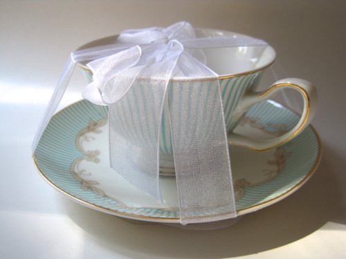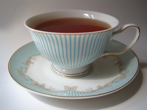 It's a Made-in-China cup and saucer from Gracie China, which has practically become my BFF of new teawares in recent years. In fact, I may just start saying "from my friend Gracie*" if I buy one of these teacups, and then you'll know what I'm talking about without me going into a big ole explanation.