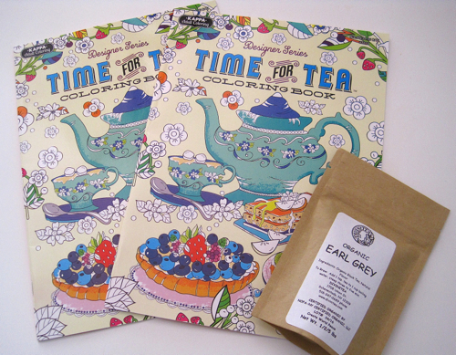 I had just about given up hope of finding anything suitable for July's giveaway when I came across some fun "Time for Tea" coloring books at Dollar Tree over the weekend. I'm giving away two — one for you to keep, one for you to share — and a package of Divinitea's Organic Earl Grey tea. In my mind, I've pictured two friends, or perhaps a grandmother and granddaughter, coloring away while sipping cups of Earl Grey, which I think would be just lovely!