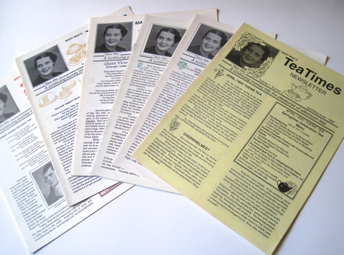 Recently I was contacted by Rose Turner Jory, one of the lovely ladies I've gotten to know through the wonderful Afternoon Tea Across America group on Facebook. She asked if I was still interested in back issues of Mary Mac's TeaTimes Newsletter, which I had mentioned in a blog post back in 2010. Indeed I was, and I quickly wrote back, wondering whether perhaps Rose had found a link to some issues online since folks are posting everything here these days. To my surprise and absolute delight, Rose herself had some of the actual newsletters and was offering to send them to me! And since I *love* to research anything and everything related to tea, can you even imagine how happy I was to receive these six issues in the mail?