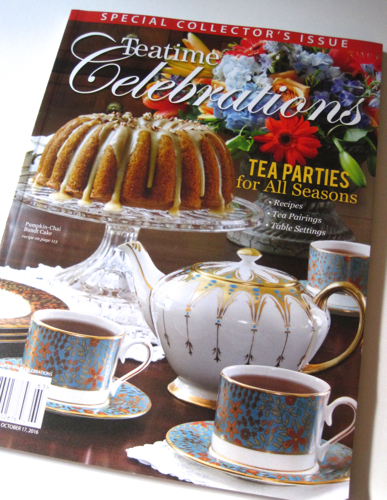 About this time every summer, I'm dripping sweat during one of my afternoon walks when I start to seriously think, "I can't wait for fall to get here." I've already started spotting the occasional brown leaf on my daily strolls, and I find myself fantasizing about cooler temperatures, warmer clothes, cinnamon scones, and spice teas. As if reading my mind, Tea Time magazine has come out with another special issue, Teatime Celebrations, that has me even more ready to welcome fall!