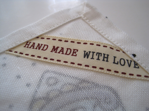 And the icing on the cake (or maybe "the clotted cream on the scone"?) was finding that a little fabric hook had been sewn onto the back of the towel, and that's how I know my beautiful new tea towel was "hand made with love" by Ginger!