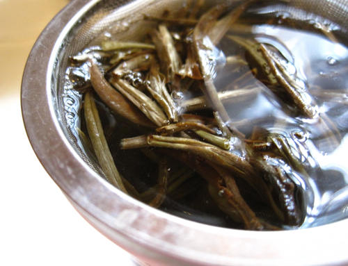 Steeped, the tea had a slightly musky scent, and when I sipped it, the tea seemed very much like a smooth, rich-tasting green, with no bitterness and no puerh taste at all. By then I was enormously curious about this new sample and had to go visit the Teavivre site, where I learned the reason for this tea's unique appearance and taste: It is "made from the tender buds of Menghai large-leaf tea in Yunnan and processed with the method similar to White Tea. So it belongs to both Puerh Tea (for its material) and White Tea (for its processing method)." I was also intrigued to find a comment that "Moonlight beauty tea is suitable for women or those tea lovers who prefer a fresh, soft and smooth taste." I must say I agree!SaveSave