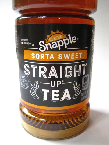 That said, I was curious what the difference would be in Snapple's Sorta Sweet and Sweet teas. I tried the Sorta Sweet first. It tasted like wimpy sweet tea with a slight, slight lemony flavor. Was this tea supposed to be flavored? I didn't think so. The citric acid, maybe? I drank only half the bottle of this tea, but it turns out, if I'd had the whole bottle, I would have consumed 21 grams of sugar. By way of comparison, there are 20 grams of sugar in a Snickers bar. Friends, I would have much preferred the Snickers bar, even if I had to melt it and sip it out of a bottle.