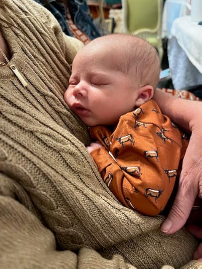 And three-week-old Hoyt was an angel at his first teatime, here in the arms of my sister, Rhonda!