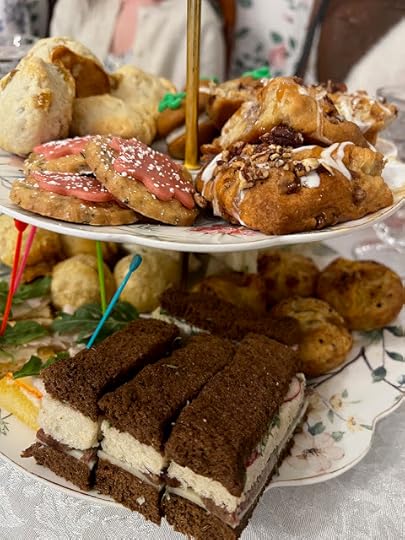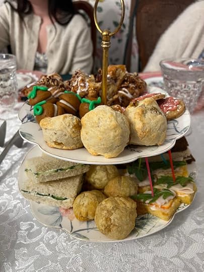As on my previous visits to this tearoom, I found the food plentiful and had to take some of the sweets home with me because I was so stuffed. I was so busy that I didn't write down notes about the tea as I usually do, but I can report that the favorite savories were the Creamy Chicken Wild Rice Soup and the bite-sized Pizza Buns, and the favorite sweet was the Apple Scone with Pecans and Caramel. It was a lovely day and definitely my favorite way to celebrate with some of my favorite girls!