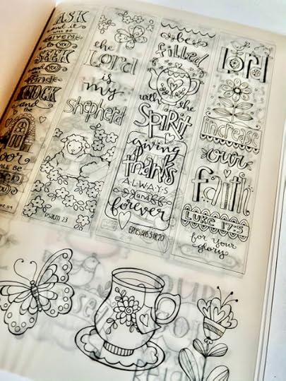 There are also some cute vellum designs that can be colored in and glued along the blank borders of those journaling Bibles that are so popular. I have one I've been coloring in for years, and I especially like the fact that Karla prefers to color "around" scriptures and not "on" them in her Bible.