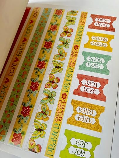 I'm headed to a craft retreat soon, and when I was at Joann the other day, I found the perfect new resource to take along! It's this Everlasting Hope book of stickers and designs by Karla Dornacher. My tea friend Lani in Hawaii first introduced me to Karla's beautiful work years ago, so when I saw her name on this book, I had to take a peek inside. And what was one of the first things I saw?