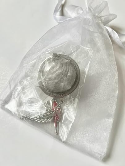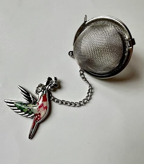The other day, my friend Deberah asked if I would be home because she had something she wanted to drop off for me. I was delighted to receive a bag of treats that included some of her homemade pumpkin muffins as well as a beautiful new tea tea infuser from her daughter, Amelia, who is also a friend! (Amelia the Friend is not to be confused with Amelia the Niece, although Amelia the Niece is also my friend, but you know what I mean.)
