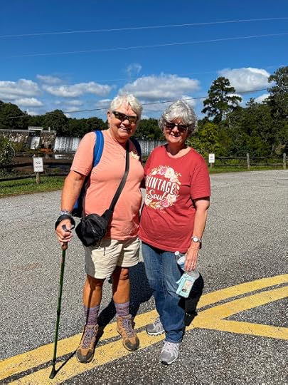 Did you have a nice Labor Day weekend? Mine was … eventful, shall we say. I was supposed to be in Statesboro crafting with some girlfriends, but on my way downstairs to leave on Thursday morning, I touched the staircase rail and felt water. Water? I looked up, and water was coming through the ceiling! A copper pipe had ruptured, and while the plumber got here promptly and repaired it, the damage was enough to mean I will be getting a new ceiling, flooring, and carpet soon. So … fun times ahead. But what did not get postponed was my Labor Day hiking adventure with my friend Tammy. Here we are at High Falls State Park in Jackson, Ga., and from there, we went to Indian Springs State Park in Flovilla, Ga., and hiked there.