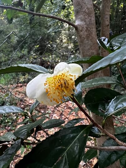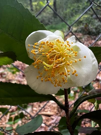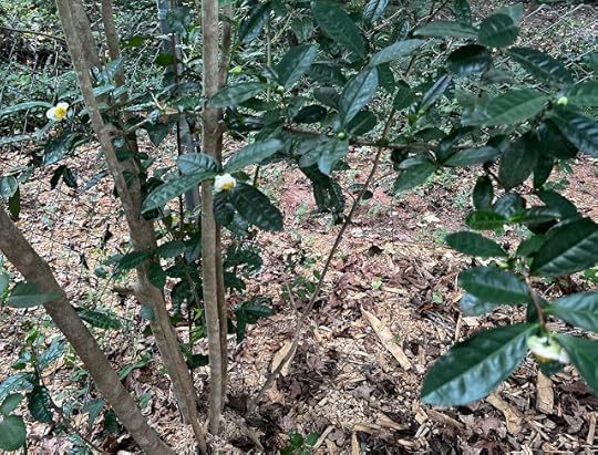 After almost a week of focusing on home repairs, I took time to enjoy tea with my little friends in the tea garden yesterday. If I hadn't, I might have missed these blossoms on my Camellia sinensis plant, and it looks like there are plenty more to come!
